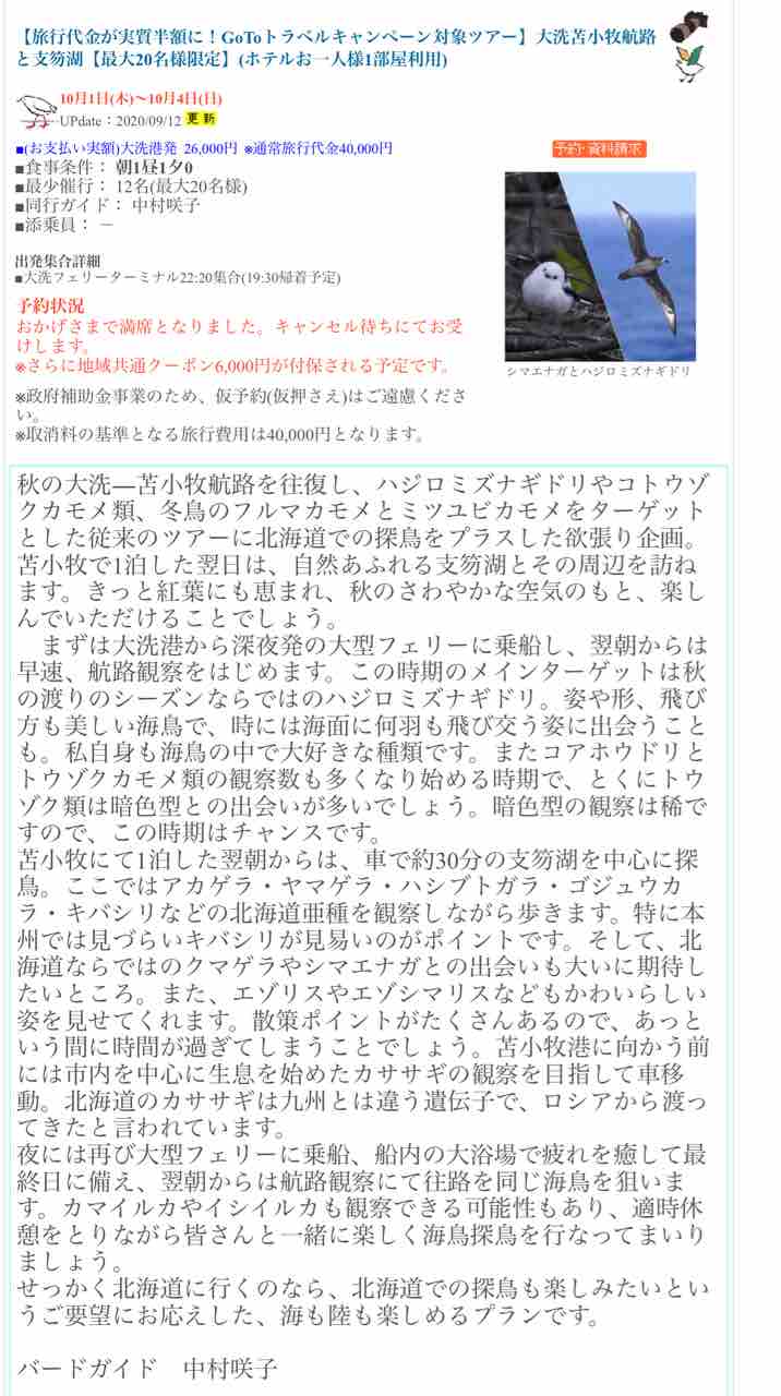 大洗苫小牧航路+支笏湖で陸探鳥をする企画ツアーにガイドで行ってきました。