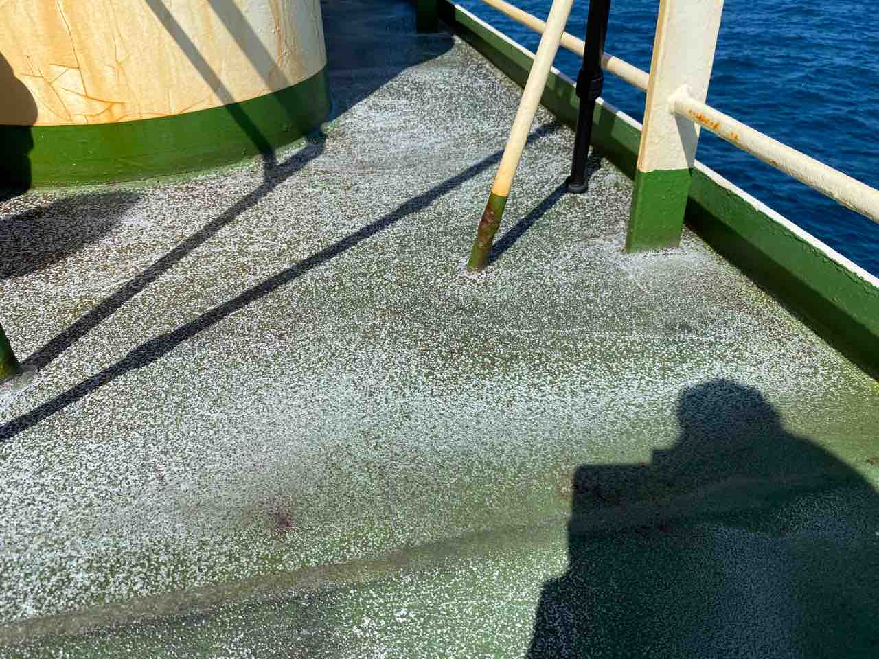 ここまで大きな船だと陸のようなもの。長距離を飛んできたので休憩したいと