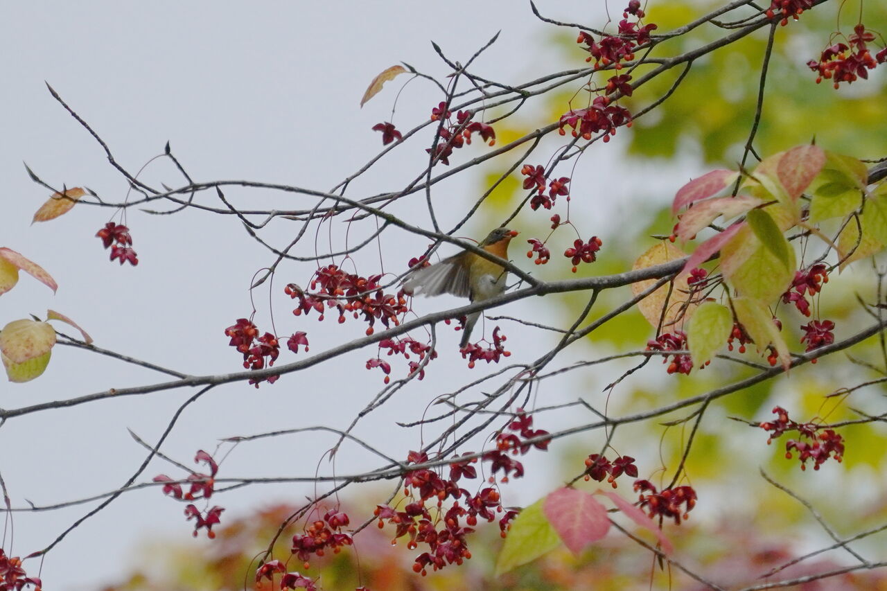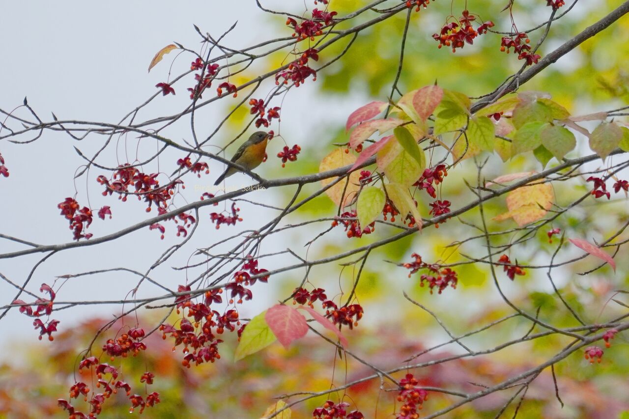 このツリバナの木にだけたくさんのヒタキ類があつまっていました。