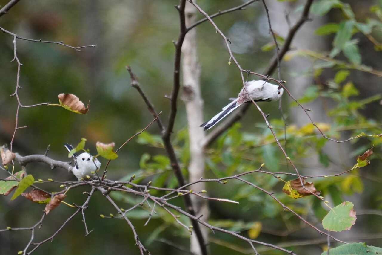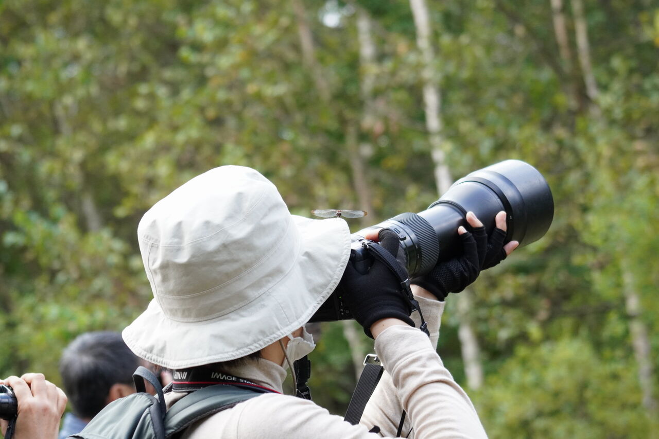 シマエナガに夢中でシャッターを切る彼女の頭にはトンボが…