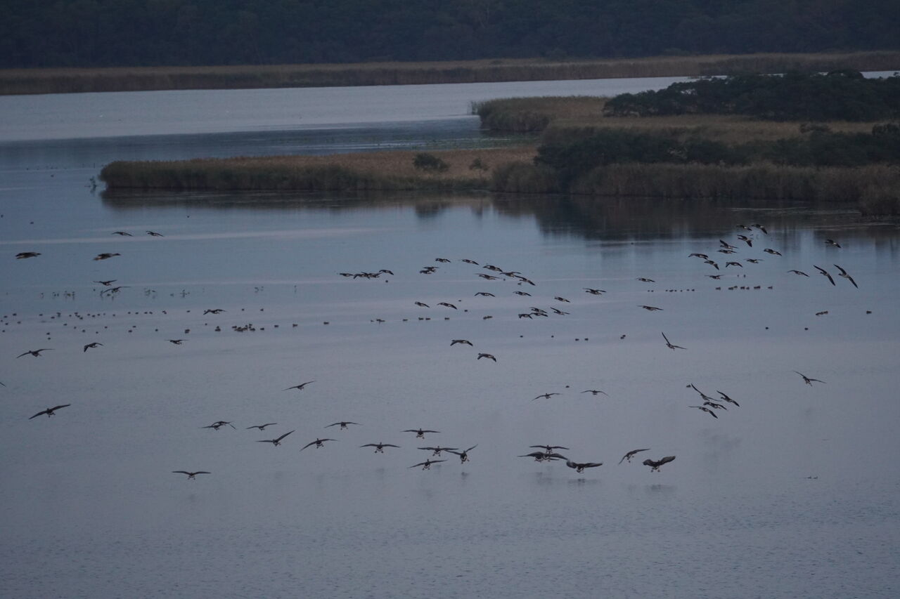 そして夕暮れになって昨年2019年3月にオープンした展望台でマガンたちの帰りを待ってみる