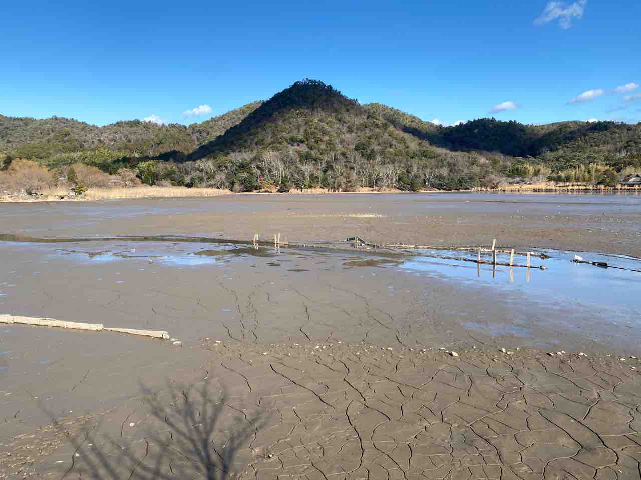 この池は冬になると水が抜かれる