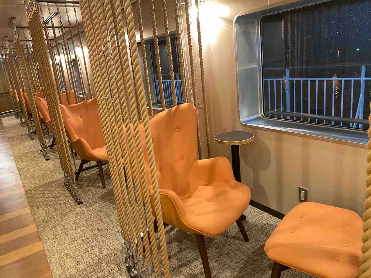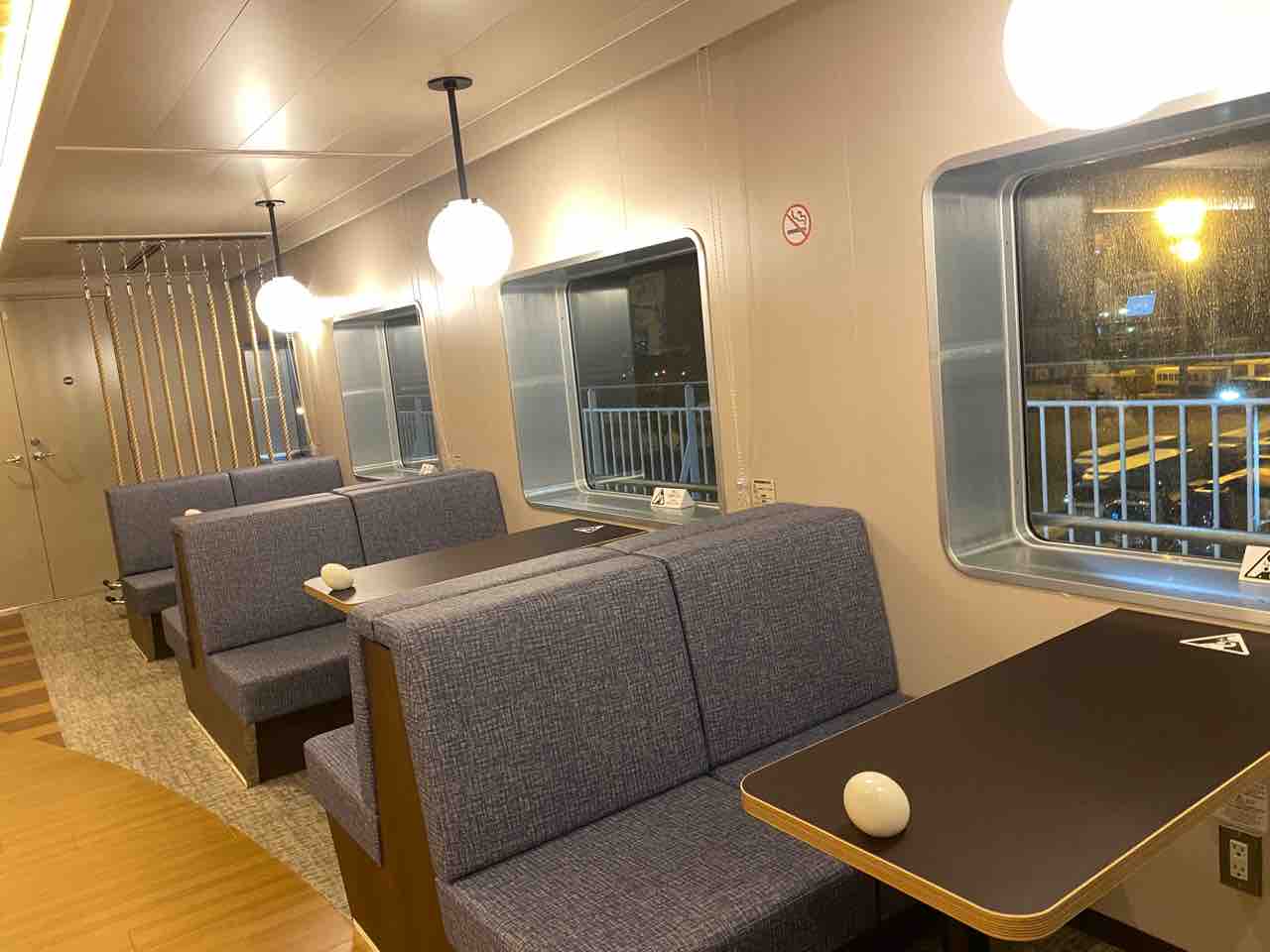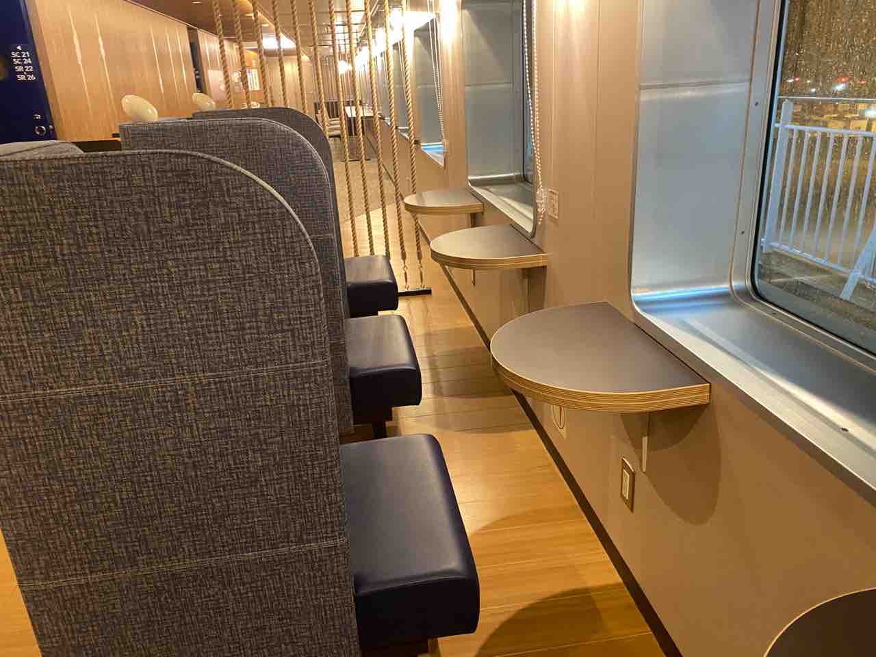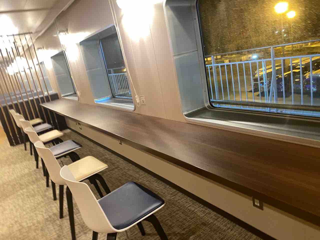 これまでの深夜便のように大きな食堂があるわけではなく、いろんなタイプの椅子が用意されている