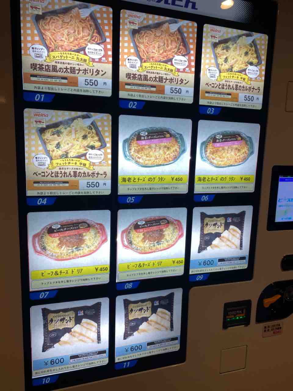 冷食が豊富。最近の冷食はおいしい。ソフトドリンク、アルコール自販機